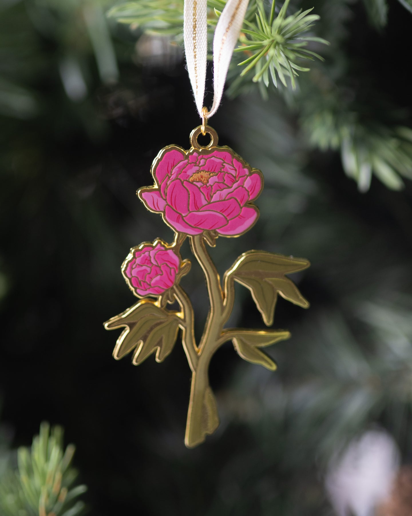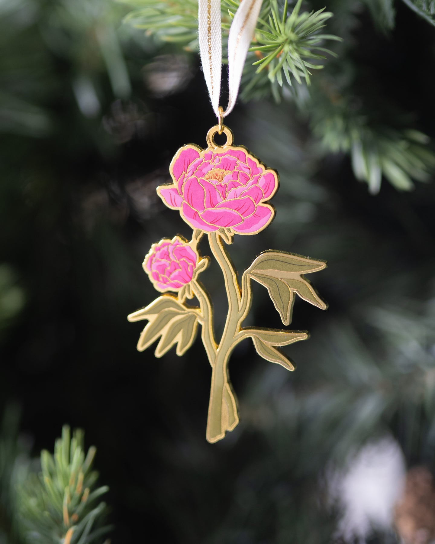 This is a detailed heirloom ornament made from my original “Peony” gouache and watercolor painting. Features cotton a ribbon made in Italy.