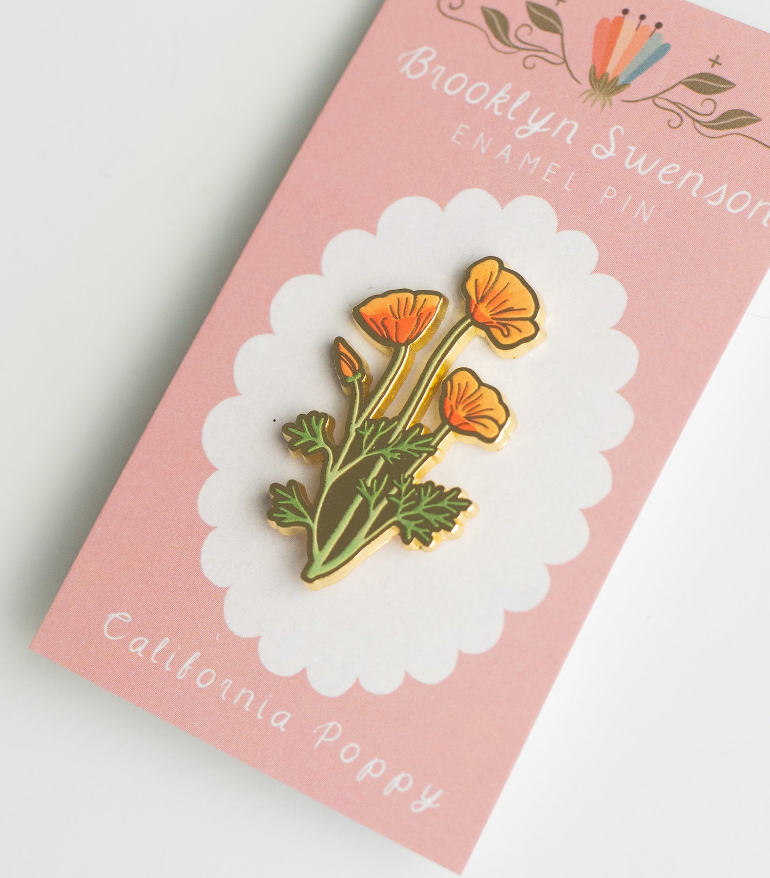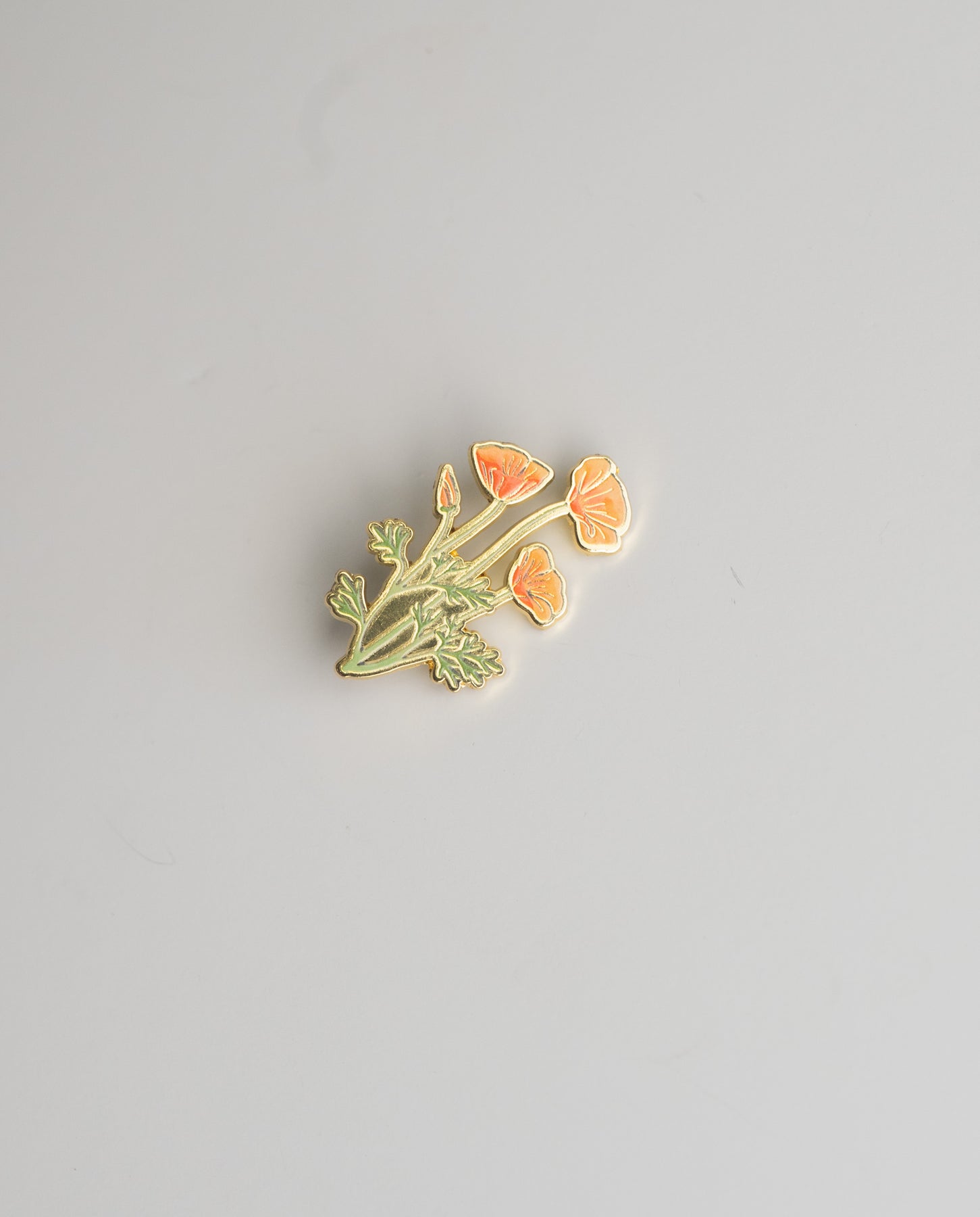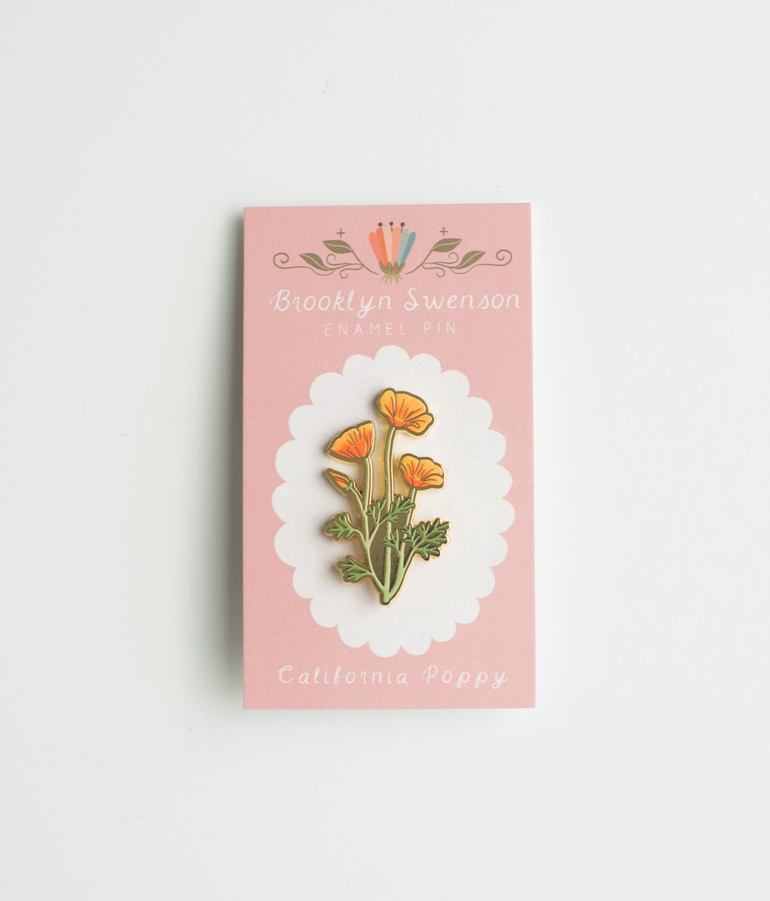 This is a detailed hard enamel pin made from my original “California Poppy” gouache and watercolor painting. Features one pin post and a tight fitting rubber backing.