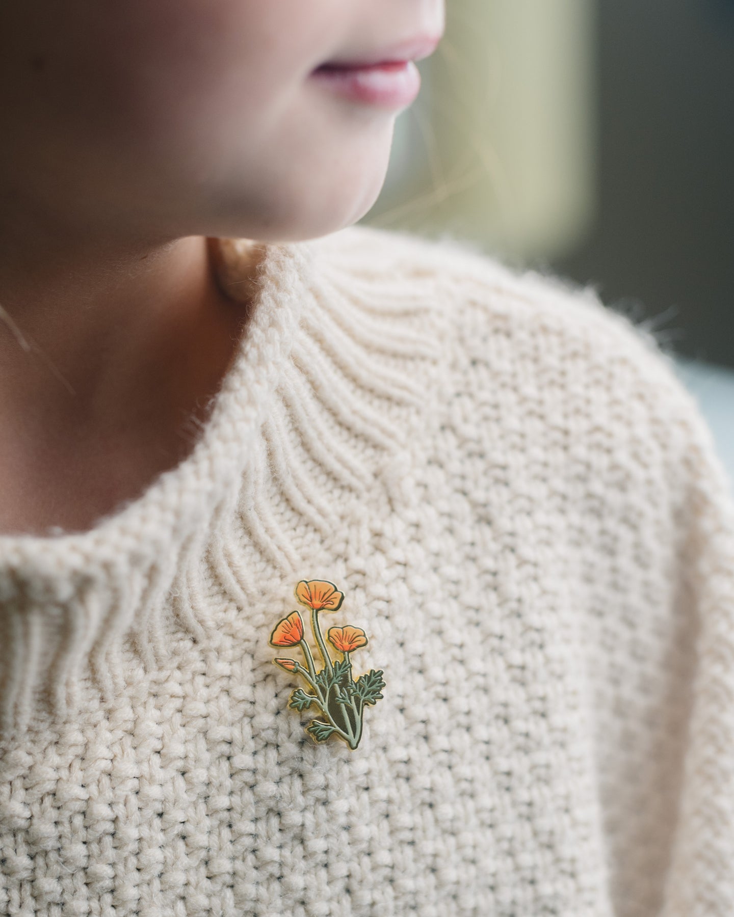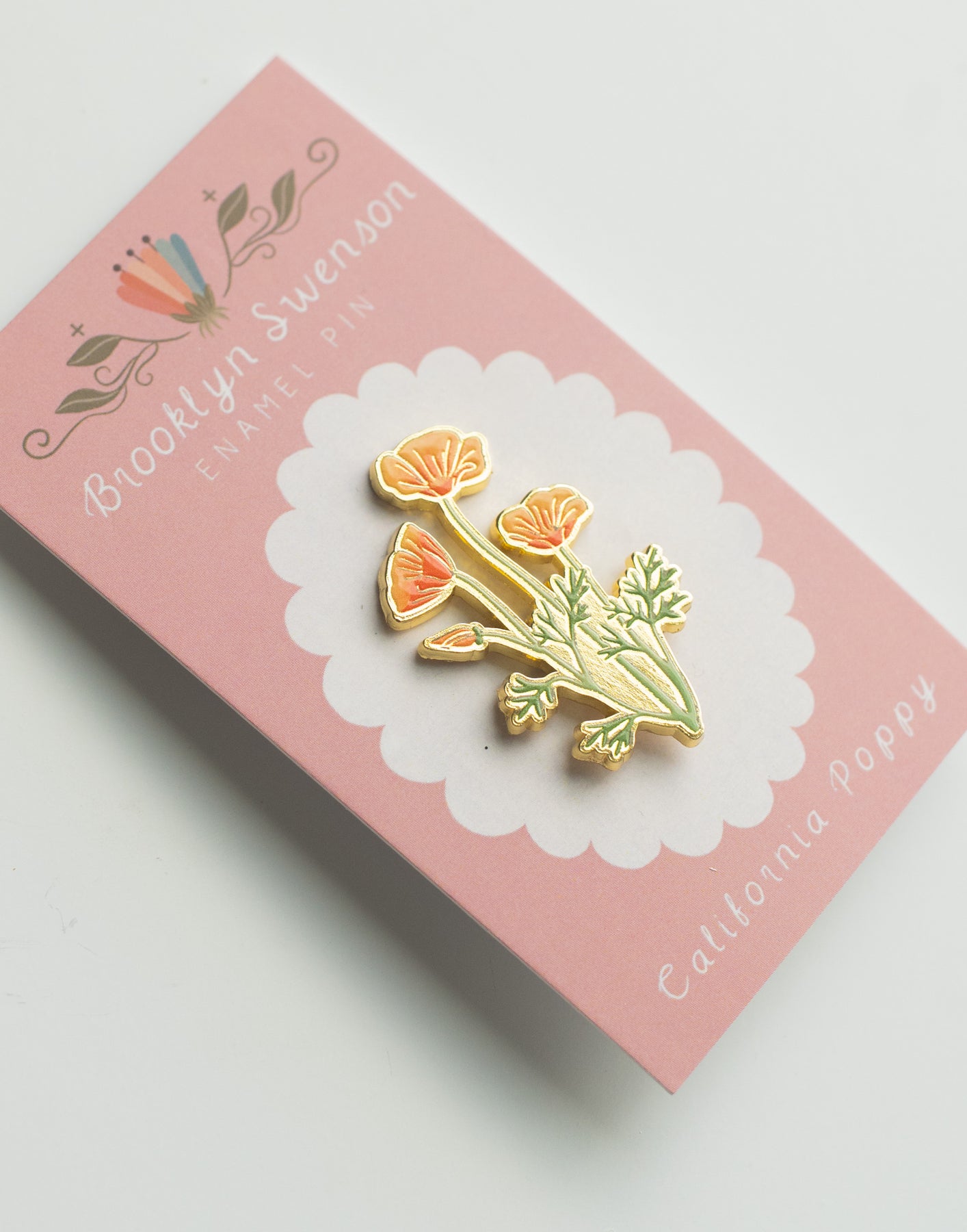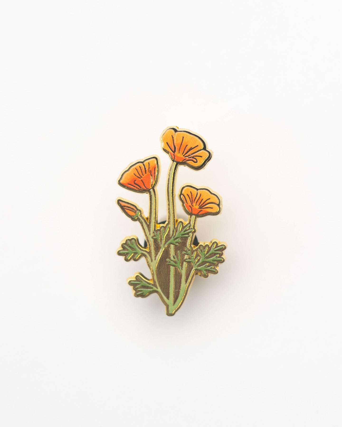 This is a detailed hard enamel pin made from my original “California Poppy” gouache and watercolor painting. Features one pin post and a tight fitting rubber backing.