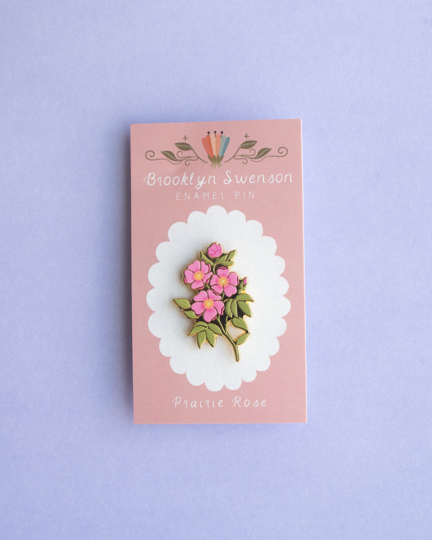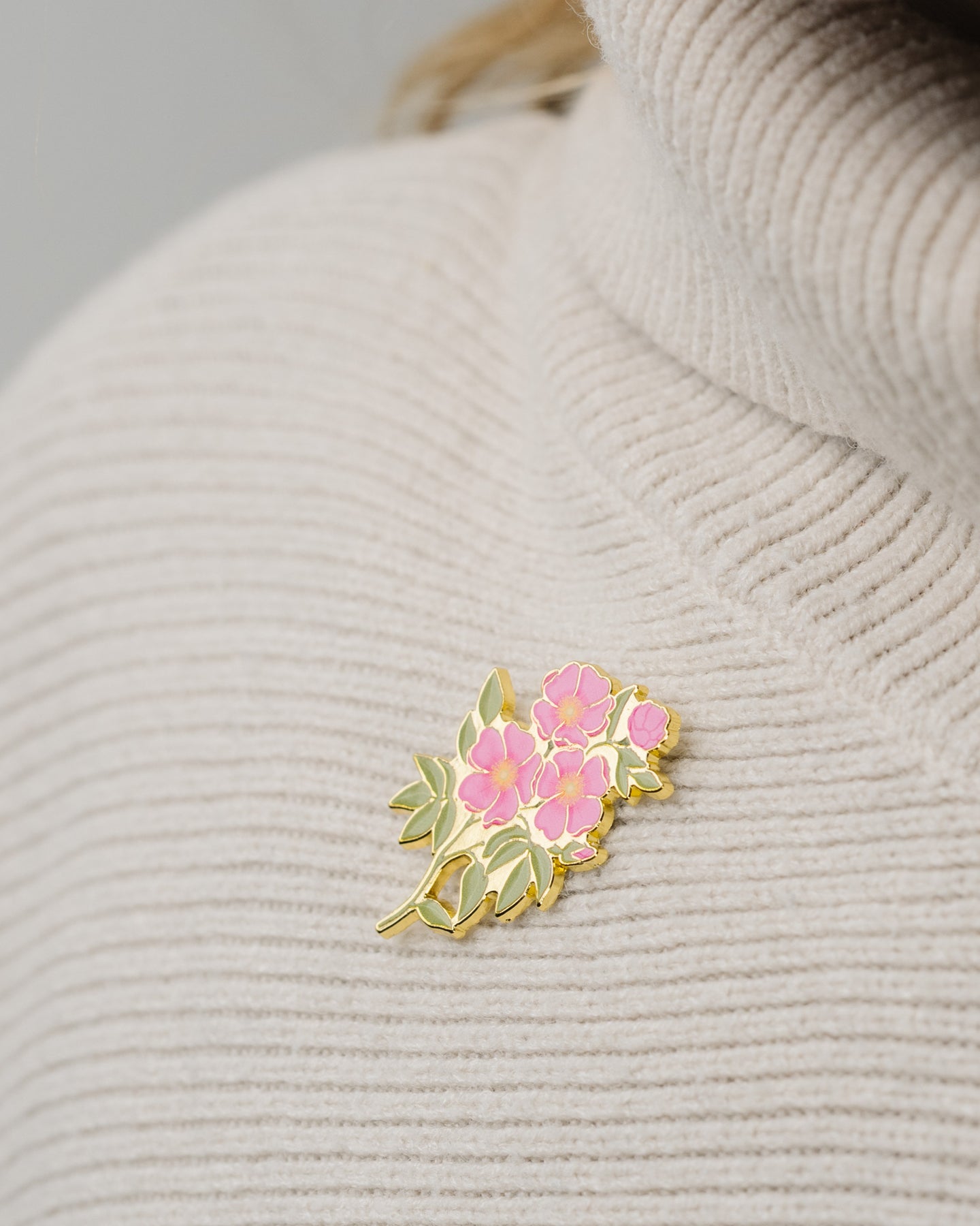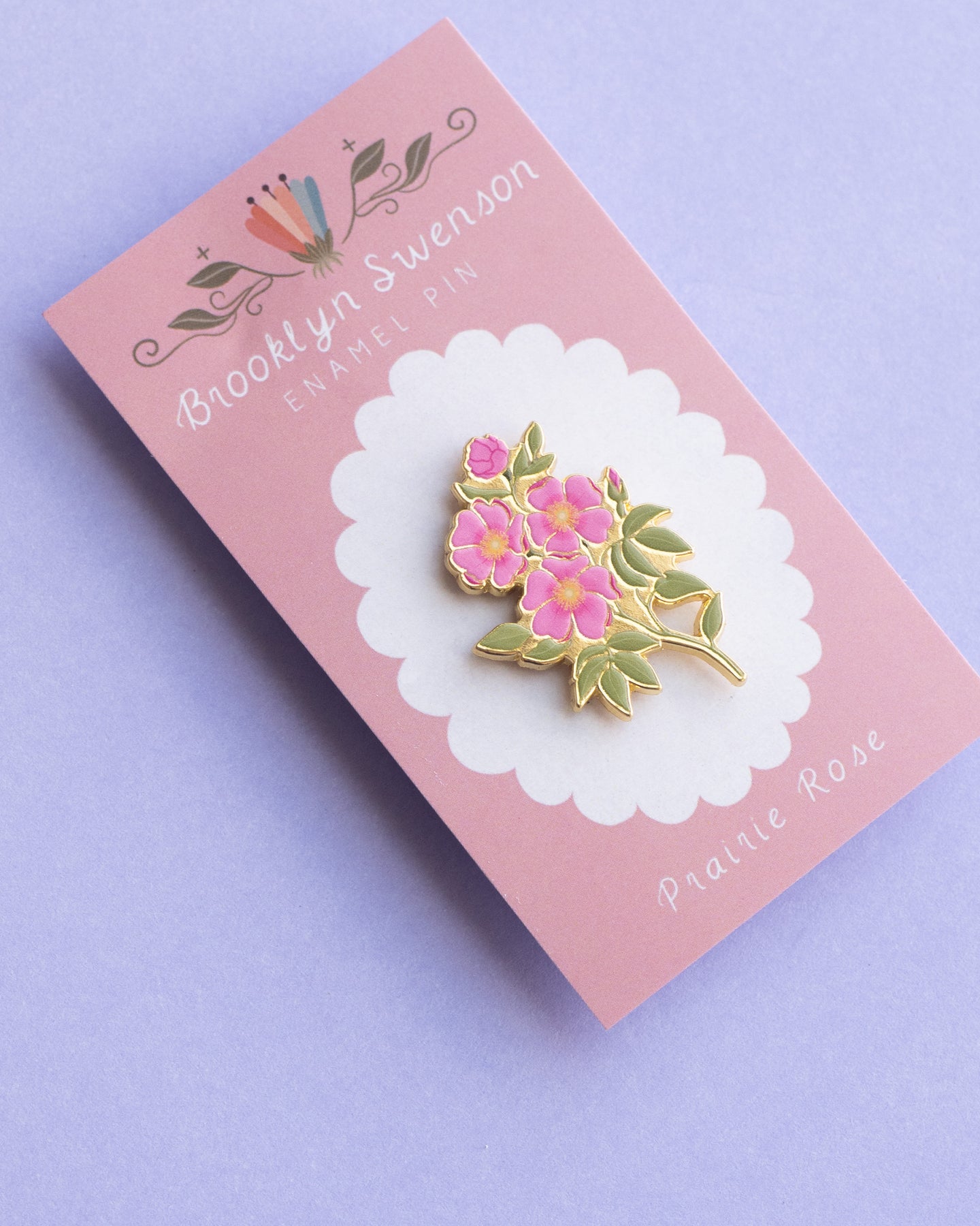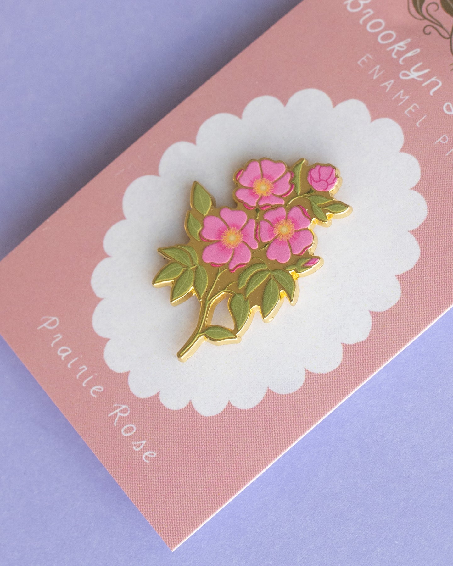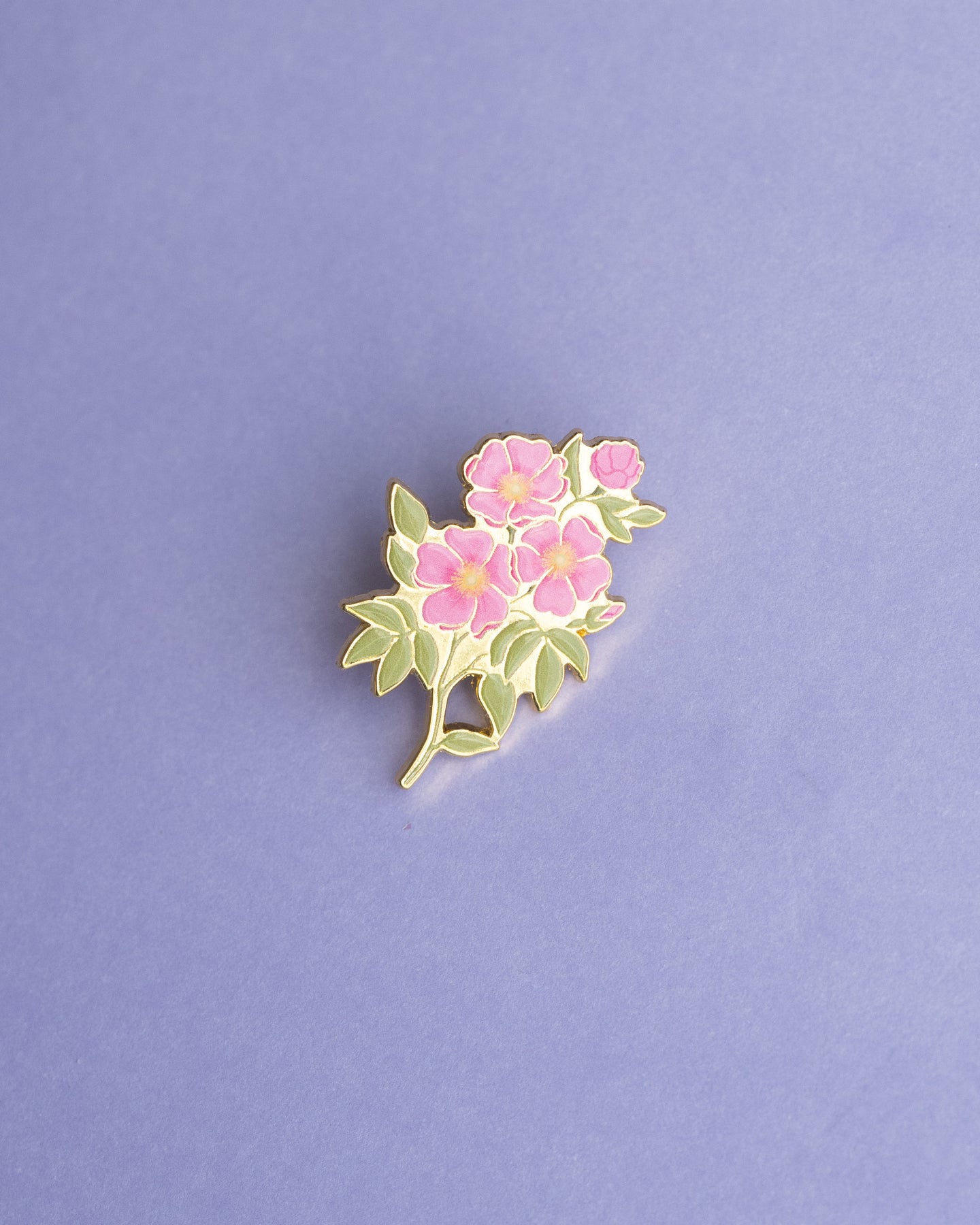 This is a detailed hard enamel pin made from my original “Prairie Rose” gouache and watercolor painting. Features one pin post and a tight fitting rubber backing.
