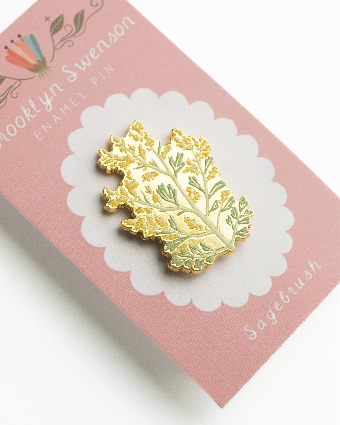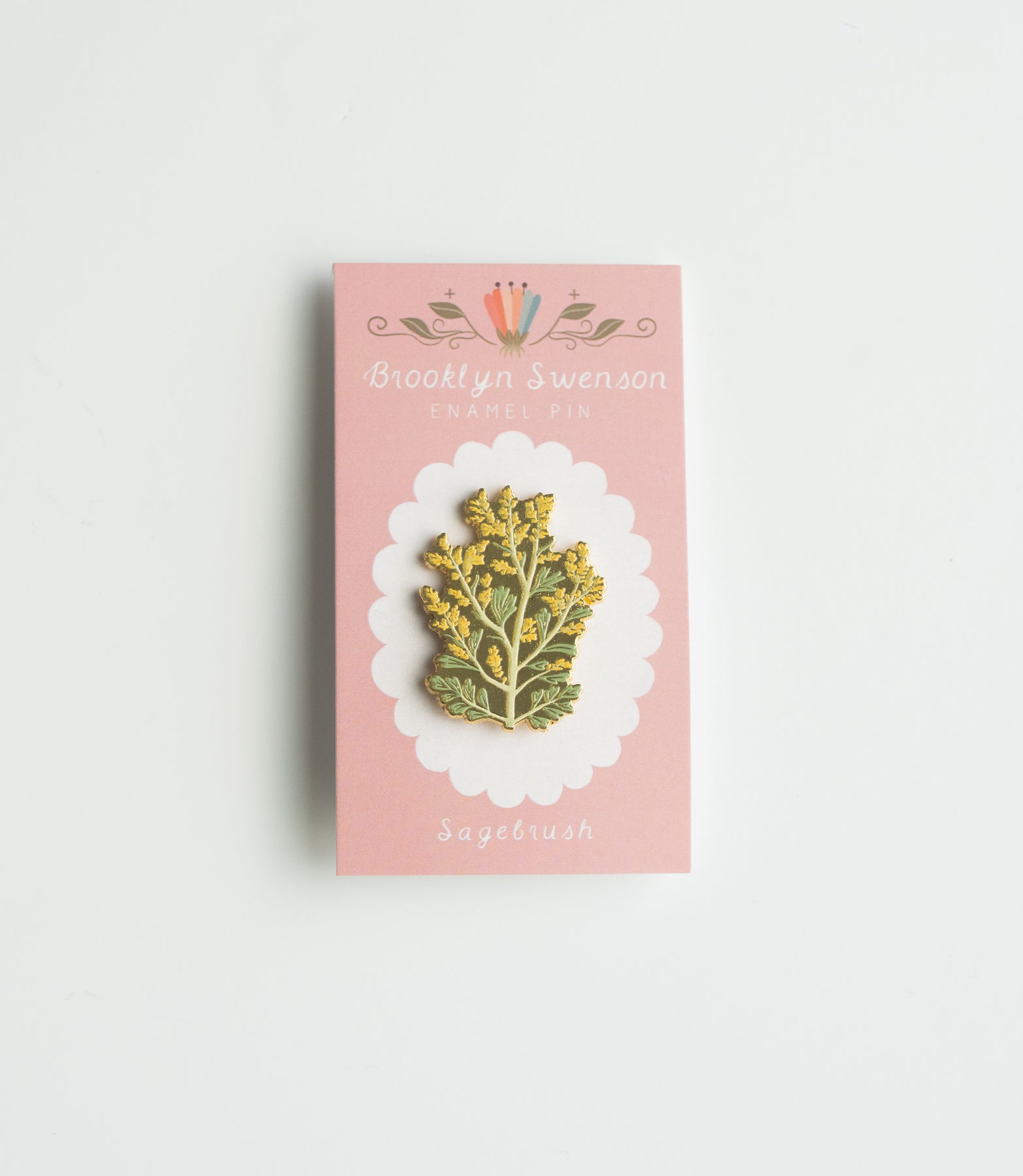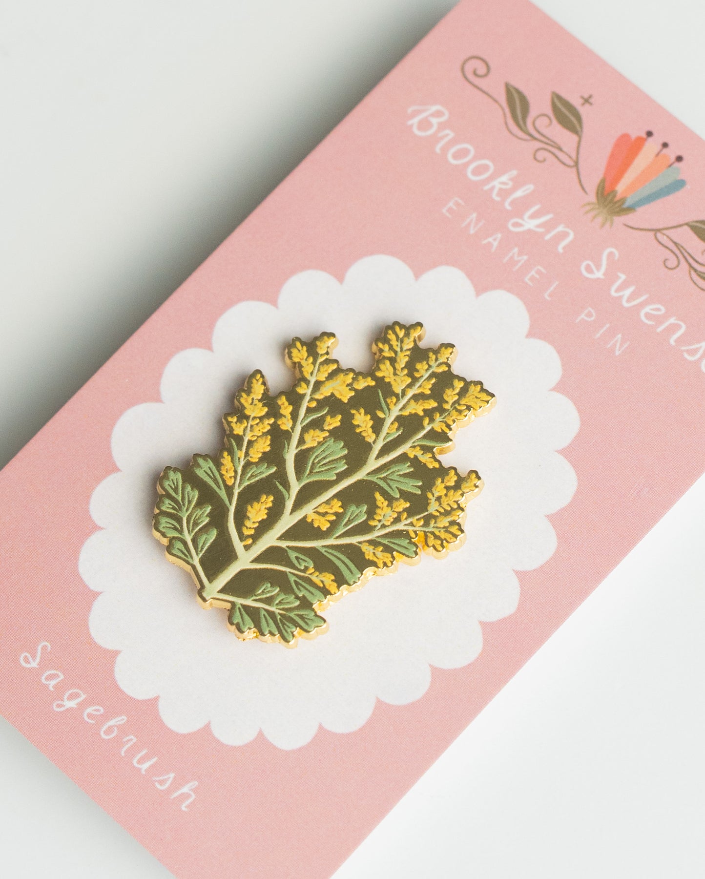 This is a detailed hard enamel pin made from my original “Sagebrush” gouache and watercolor painting. Features one pin post and a tight fitting rubber backing.