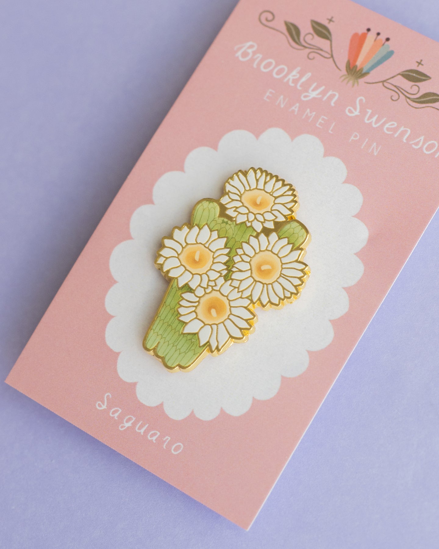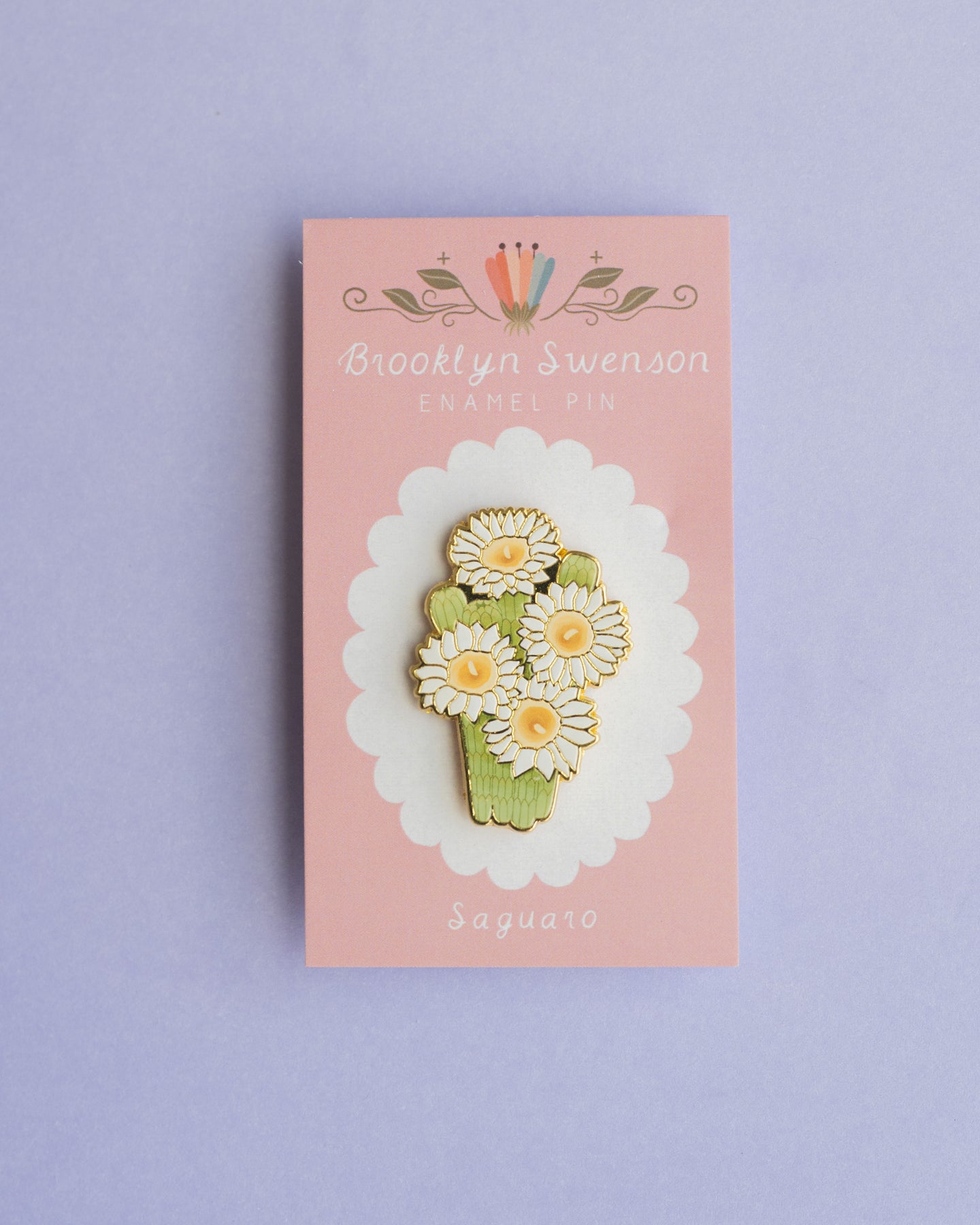 This is a detailed hard enamel pin made from my original “Saguaro” gouache and watercolor painting. Features one pin post and a tight fitting rubber backing.