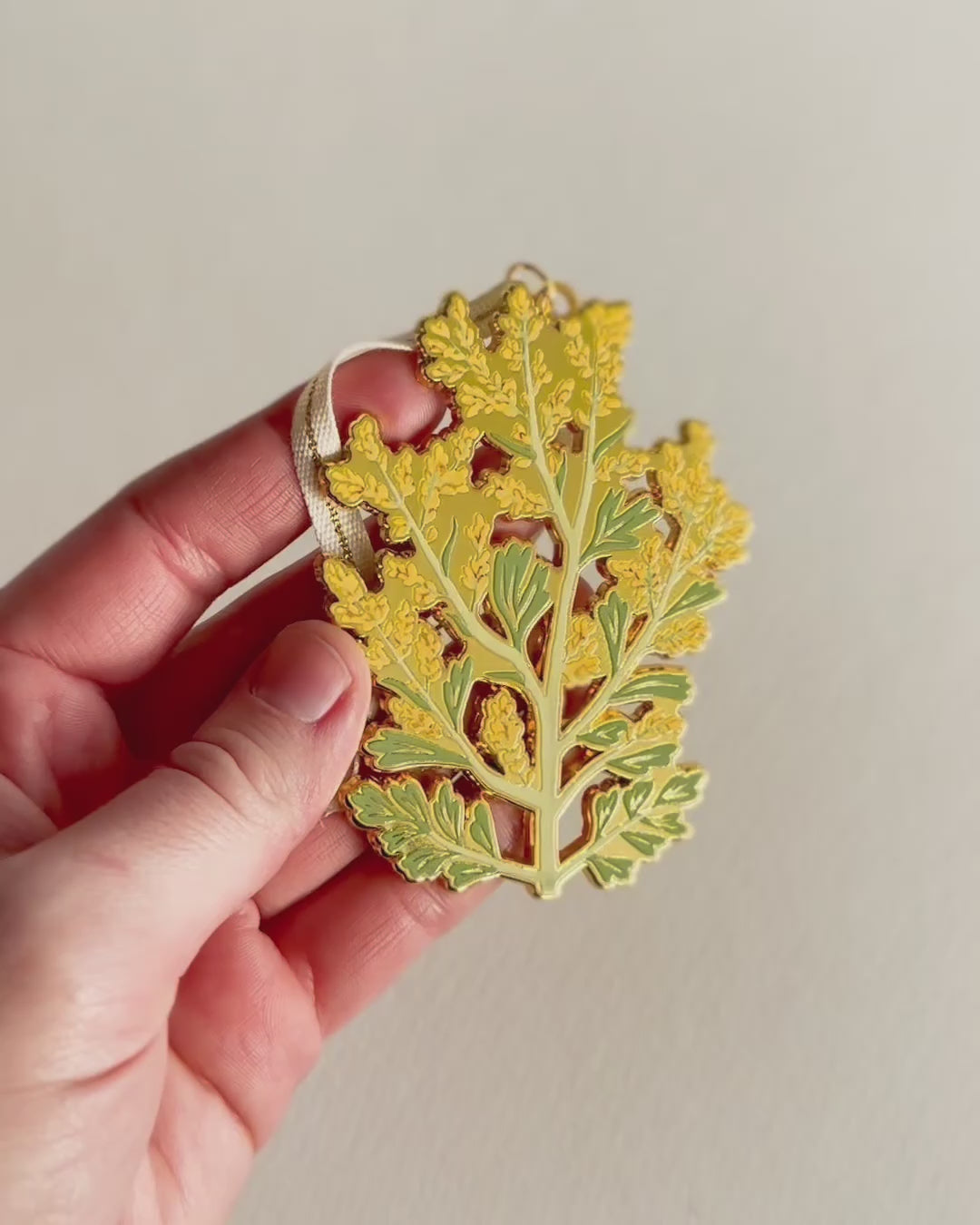 This is a detailed heirloom ornament made from my original “Sagebrush” gouache and watercolor painting. Features cotton a ribbon made in Italy.