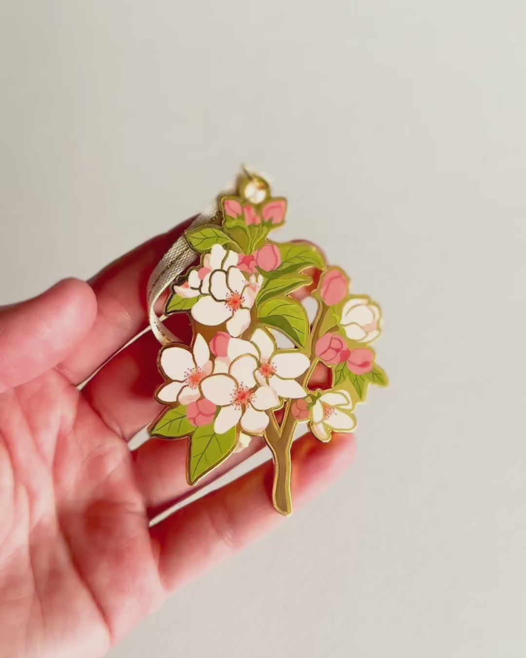 This is a detailed heirloom ornament made from my original “White Hawthorn” gouache and watercolor painting. Features cotton a ribbon made in Italy.
