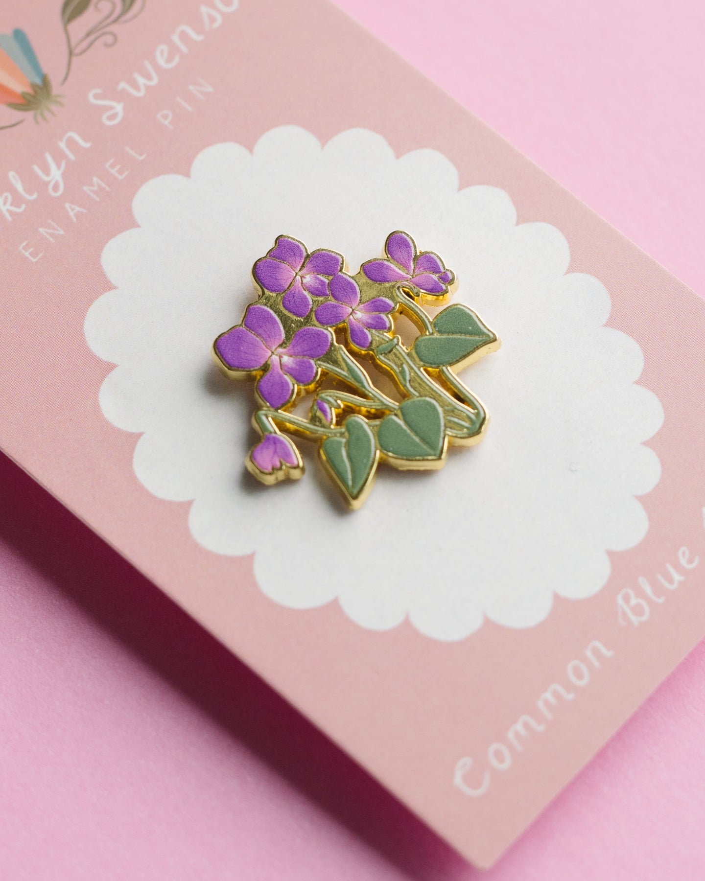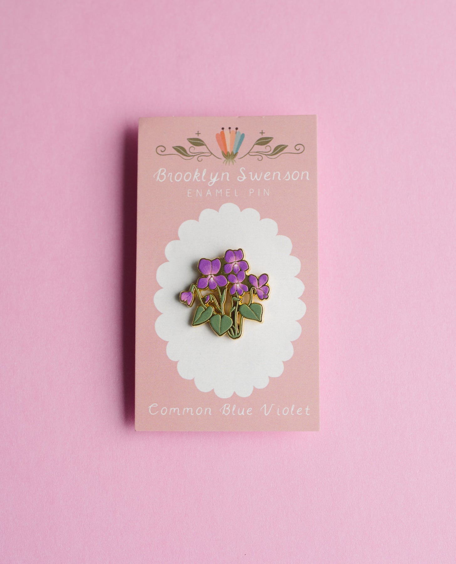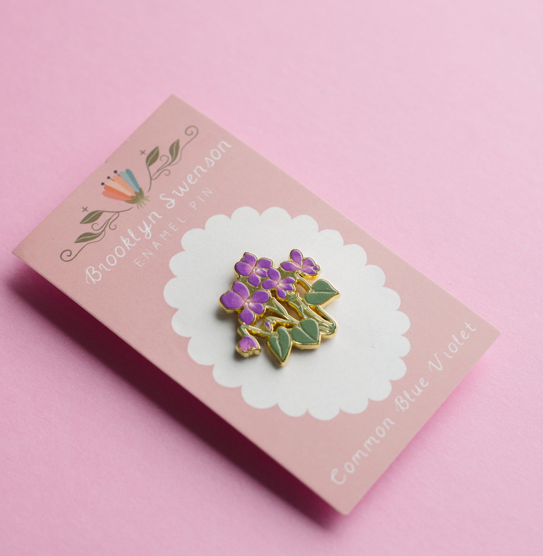 This is a detailed hard enamel pin made from my original “Blue Violet” gouache and watercolor painting. Features one pin post and a tight fitting rubber backing.