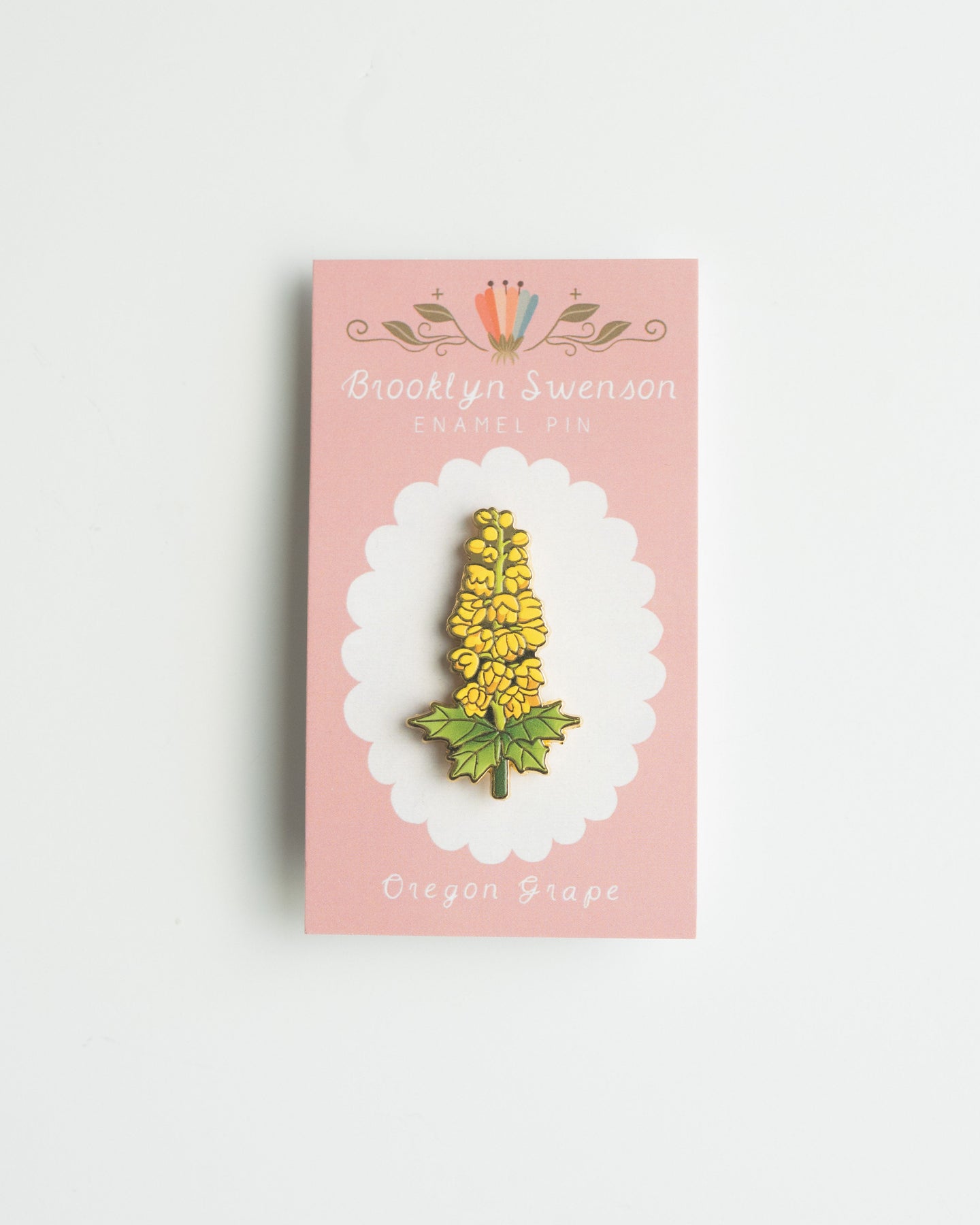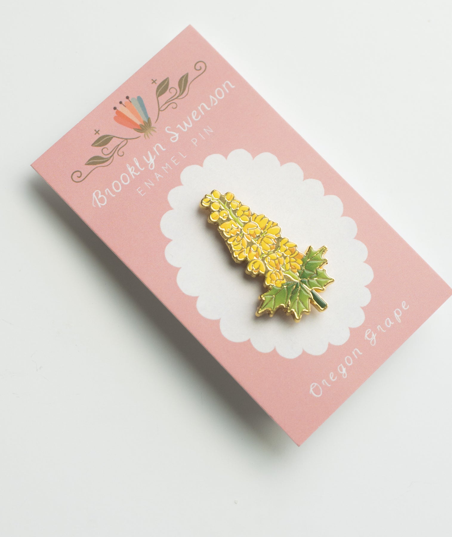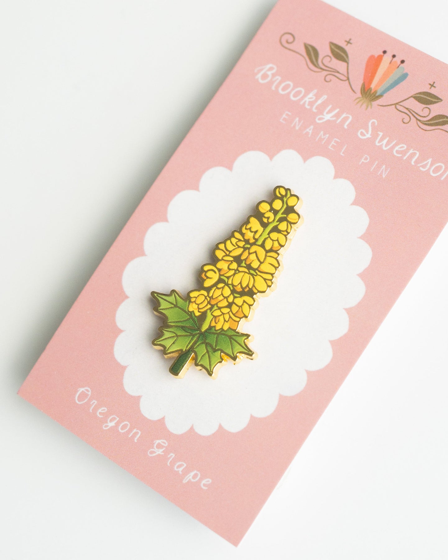 This is a detailed hard enamel pin made from my original “Oregon Grape” gouache and watercolor painting. Features one pin post and a tight fitting rubber backing.