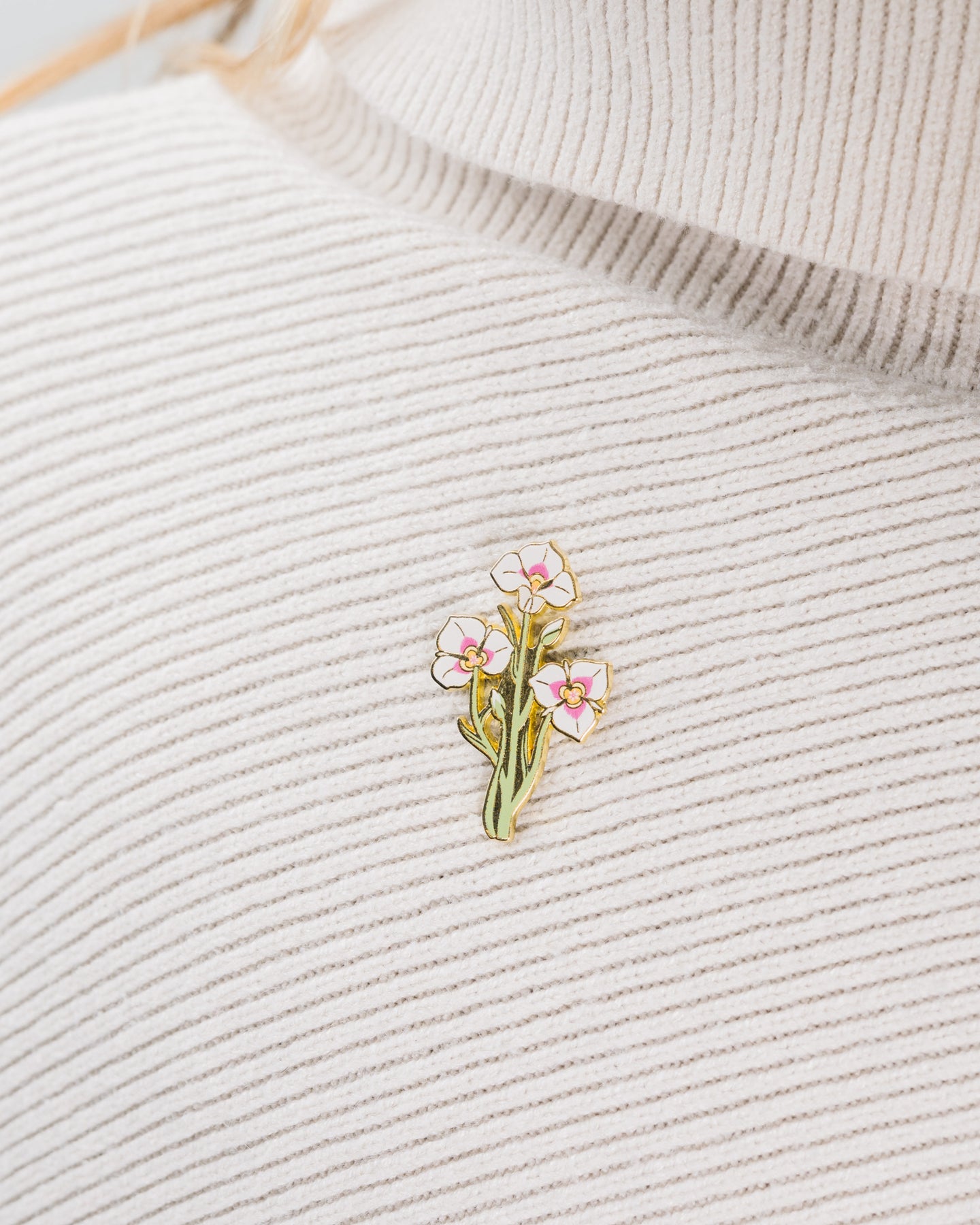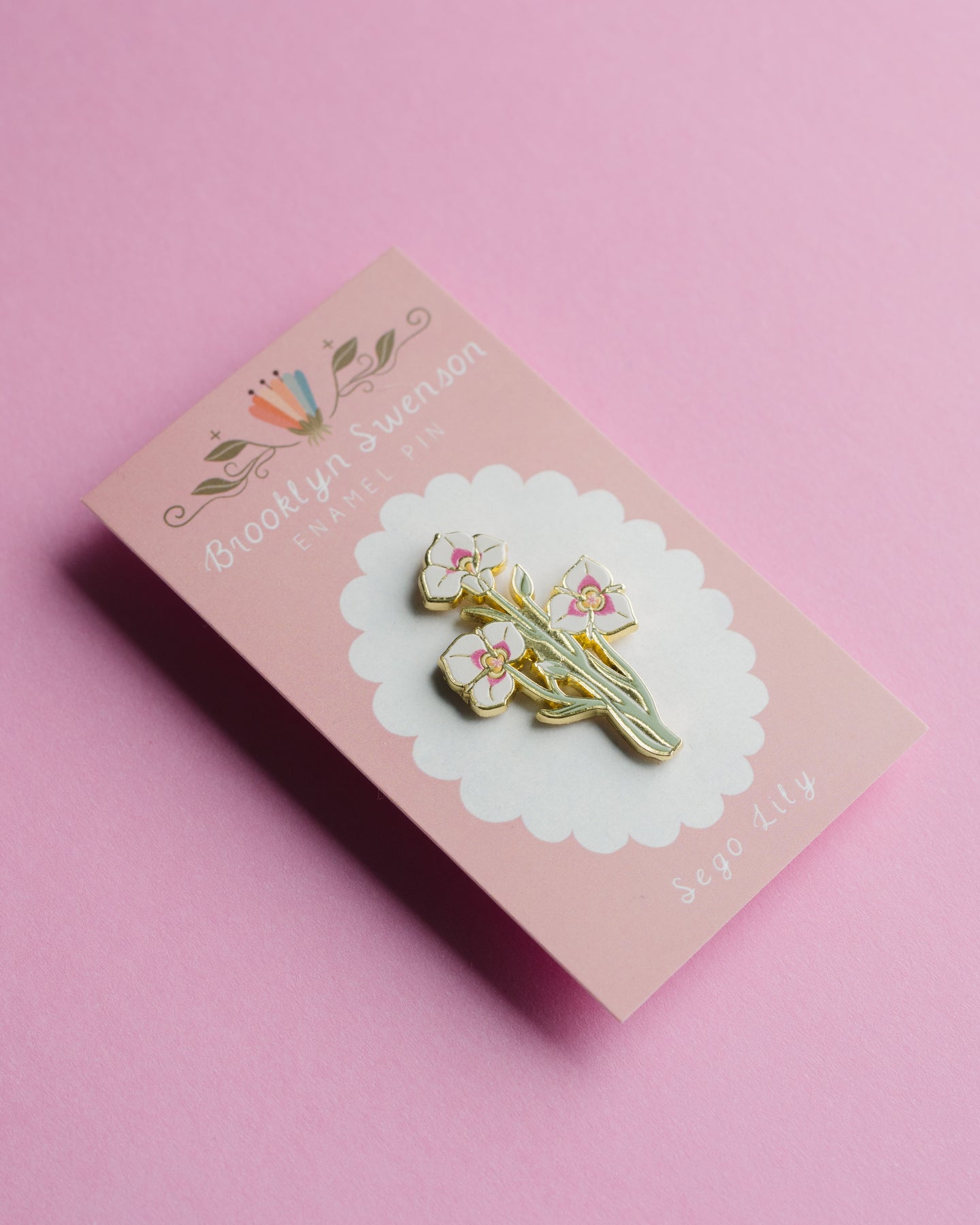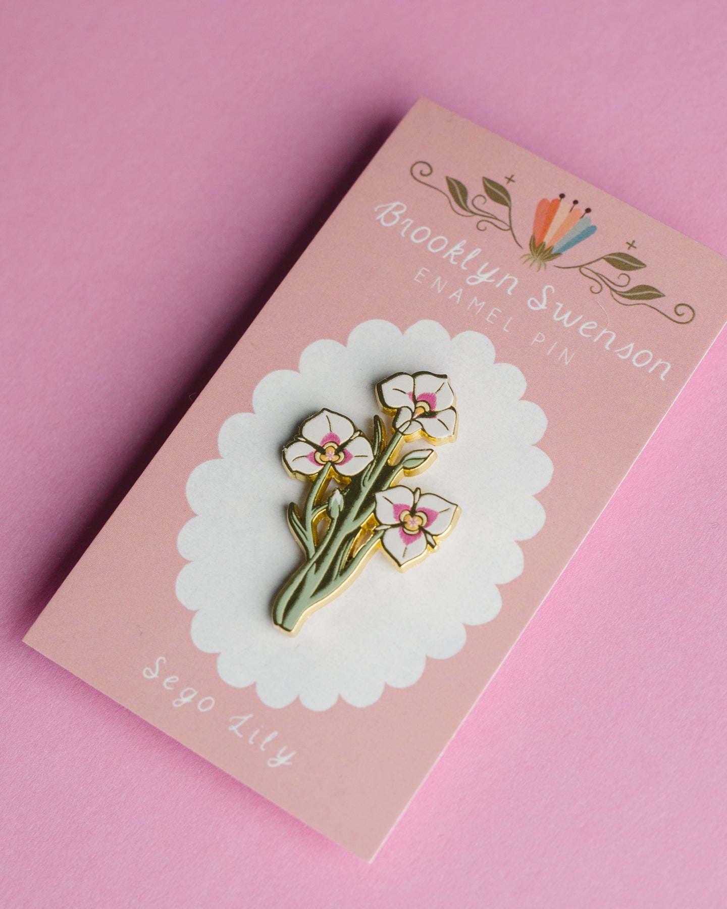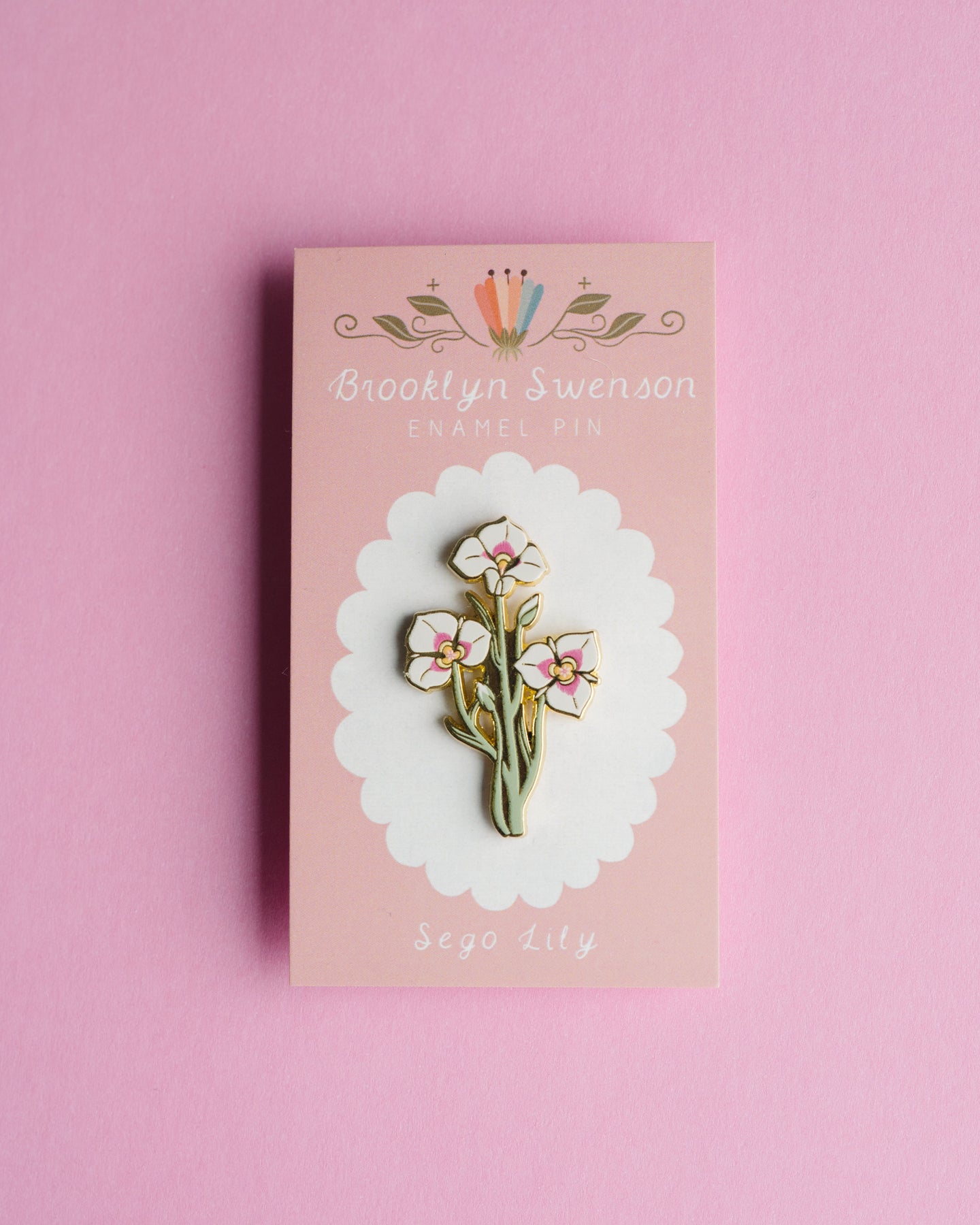 This is a detailed hard enamel pin made from my original “Sego Lily” gouache and watercolor painting. Features one pin post and a tight fitting rubber backing.